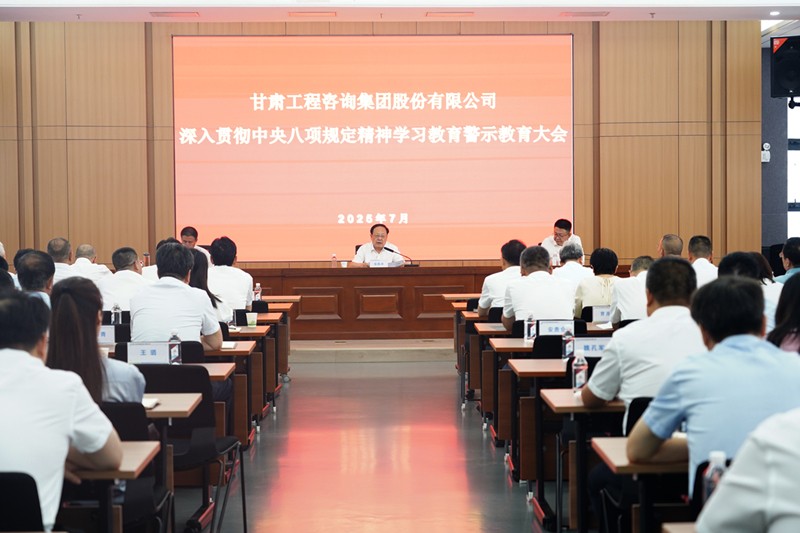 為持續深化作風建設,筑牢廉潔自律防線,近日,甘肅工程咨詢集團召開深入貫徹中央八項規定精神學習教育警示教育大會。會議深入學習貫徹習近平總書記關于作風建設的重要論述,傳達省委及省屬企業相關警示教育會議精神,通報有關警示教育案例,落實“以案促改、以案促治、以案促建”要求,引導廣大黨員干部鍥而不舍落實中央八項規定精神,推動學習教育走深走實。
