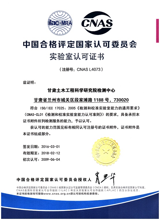 證書編號:CNAS L4073 ,有效期至:2018.2.12。